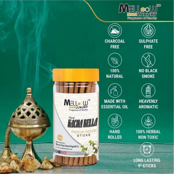 - ✅ 100% Organic & Natural – Made from organic Kacha Bella, these dhoop sticks are free from harmful chemicals, offering a pure, eco-friendly, and safe experience for pooja, meditation, and spiritual rituals.