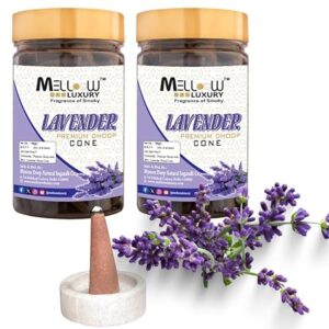 - ✅ Calming Lavender Aroma: MELLOOW LUXURY Lavender Dhoop Cones emit a soothing and floral fragrance, perfect for pooja, meditation, and relaxation, promoting peace and tranquility.