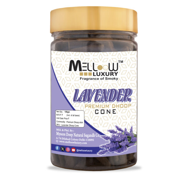 - ✅ Calming Lavender Aroma: MELLOOW LUXURY Lavender Dhoop Cones emit a soothing and floral fragrance, perfect for pooja, meditation, and relaxation, promoting peace and tranquility.